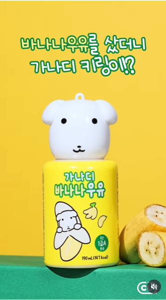 가나디 바나나우유의 가장 큰 특징은 바로 뚜껑이 가나디 캐릭터 얼굴 모양의 키링 겸 오프너라는 점이다. 단순한 음료가 아니라 굿즈 수집용으로도 매력이 충분해 SNS 인증샷이 줄을 잇고 있다.