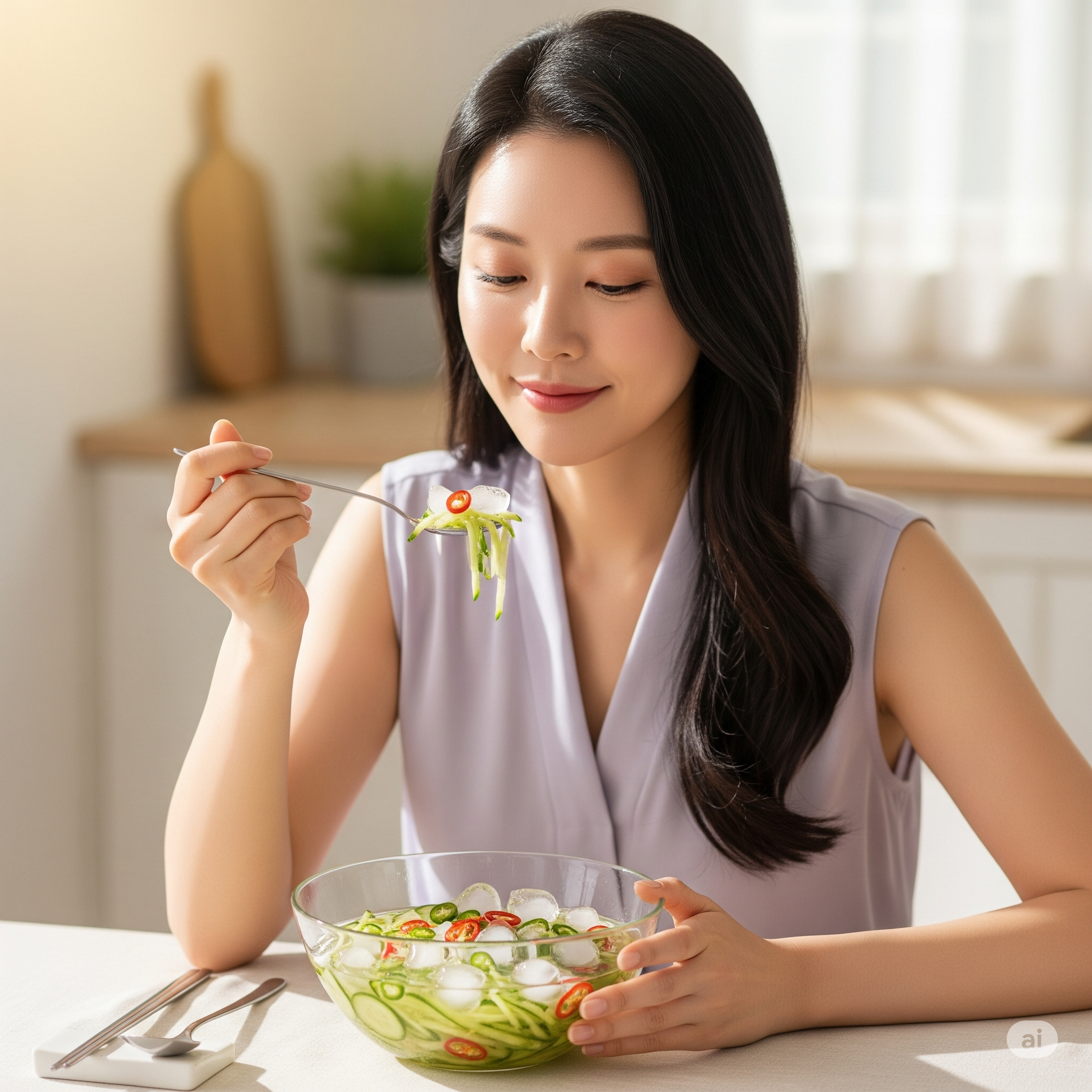 - Q: 오이냉국 국수를 더욱 시원하게 즐기는 방법은 무엇인가요?